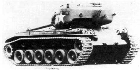 En juin 1944, le haut commandement des forces terrestres accorda la priorité au programme T26. Le T26E1 fut équipé d'une tourelle moulée développée à partir de la tourelle T23 qui équipa les Shermans(76). Le dernier Shermans avec le canon de 76 mm furent jugés suffisant pour finir la guerre, même si les Américains perdaient en moyenne trois chars pour seulement un pour les Allemands. Mais comme des effectifs n'étaient pas comparables, le projet T26 n'a pas été considéré comme prioritaire mais était destiné pour la période d'après-guerre. Cependant le développement abouti à la fin de 1944 sur un modèle prêt au combat. In June 1944, the high command of the ground forces gave the priority to the T26 program. The T26E1 was equipped with a moulded turret developed starting from the T23 turret which equipped Shermans(76). The last Shermans with the gun of 76 mm were judged sufficient to complete the war even if the Americans lost on average three tanks for only one for the Germans. But like strenghts were not comparable, the T26 project was not considered to be urgent and was not intended in priority for the post-war period. However the development leads at the end of 1944 on a model suited to the combat.