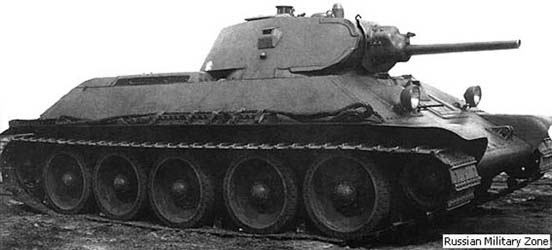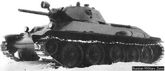 Le 26 septembre 1940, le responsable du projet T-34, M.I. Koshkin décède. Il fut remplacé par A.A. Morozov qui verra la naissance de deux nouvelles variantes du T-34. La première variante fut l'A-41, fut une tentative de résoudre les défauts d' origine sans modifier la caisse et le train de roulement du T-34. Il devait cependant être doté d' une nouvelle tourelle pouvant accueillir trois hommes et dotée d' une circulaire d' un diamètre de 1.70 m alors que le diamètre standard était de 1.42 m. Cette tourelle devait être dotée du nouveau canon de 76.2 mm F-34. Ce modèle prometteur ne fut cependant jamais finalisé et resta sur les planches à dessins des ingénieurs russes. La seconde version A-43, connue en tant que T-34M, était plus étroite, haute et longue que le modèle de production. Il n' y a pas de classification très précise concernant les différents modèles de T-34/76. Les améliorations successives apportées durant la production et les différents changements apportés par les différents producteurs ne facilitent pas la tâche. On peut cependant établir quatre modèles différents. Les critères utilisés sont en gros la période de production et la tourelle montée sur le T-34. September 26, 1940, the person in charge for the T-34 project, M.I. Koshkin dies. It was replaced by A.A. Morozov which will see the birth of two new alternatives of T-34. The first alternative was A-41, was an attempt to solve the defects of origin without modifying the hull and the train of bearing of T-34. It was however to be equipped with a new turret being able to accomodate three men and equipped with a turret ring of a diameter of 1.70 m whereas the standard diameter was of 1.42 m. This turret was to be equipped with the new gun of 76.2 mm F-34. This promising model was not however never finalized and remained on the drawing boards of the Russian engineers. The second A-43 version, known as T-34M, was narrower, high and long that the model of production. There is no very precise classification concerning the various models of T-34/76. The successive improvements made during the production and the various changes brought by the various producers do not facilitate the task. One can however establish four different models. The criteria used are the period of manufacture and the turret assembled on T-34.