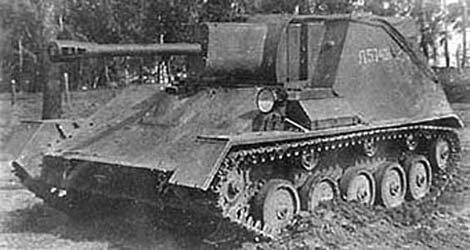 SU-76 Tank Destroyer/Assault Gun Genesis Quand l'Union soviétique entre en guerre contre l'Allemagne nazie, elle ne disposait pas de canons automoteurs produits en masse pour assurer le soutient de l'infanterie durant ses assauts ou jouer le rôle de chasseur de char. A la fin des années trente les Russes disposaient en tout et pour tout quelques SU-5 basés sur le châssis du char léger T-26 qui furent utilisés de façon limitée durant la campagne de Pologne en 1939. En septembre 1941, le ZIS-30 fut réalisé en tant que mesure d'urgence et transitoire tant le besoin en ce genre de char était grand. Le ZIS-30 était basé sur le tracteur d'artillerie Komsomolets doté seulement d'une faible autonomie et stabilité. Cependant il était efficace contre tous les véhicules allemands de l'époque et était peu coûteux. Durant les années trente, plusieurs tentatives furent faites de développer des canons automoteurs et des chars de DCA à partir du châssis du T-26. When the Soviet union enters at war against Germany nazie, it did not dispose any self-propelled guns produced in mass to assure the support of infantry during its assaults or play the role of tank destroyer. At the end of the thirties the Russians disposeed in all and for all some SU-5 based on the chassis of the light tank T-26 that were used in a manner limited during the Poland campaign in 1939. In September 1941, the ZIS-30 was realized in so as urgency and transitional measures so the need in this tank kind was big. The ZIS-30 was based on the artillary tractor Komsomolets endowed only with a weak range and stability. Nevertheless it was effective against all the German vehicles of the era and was not very costly. During the thirties, several attempts were done to develop self-propelled guns and AA tanks from the chassis of the T-26.