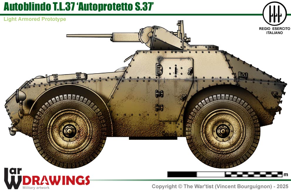 In early 1941, FIAT-SPA built this single prototype and it was sent to North Africa immediately for trials. Unfortunately, there was no opportunity to effectively evaluate the vehicle under combat conditions. The T.L.37 Autoblindo (A.S.37) is reported to have been lost at Sidi Rezegh (located south of the main road between Tobruk and Bardia, East of El Adem) possibly through a mechanical failure in Autumn 1941. |