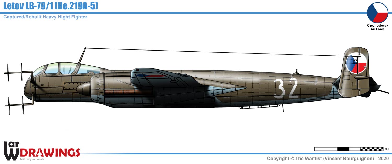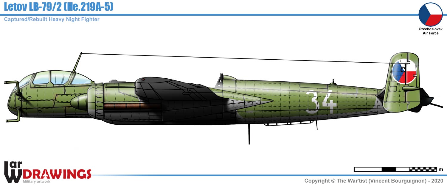 1952. - He-219A-5 captured and repaired by Czechs and used for night