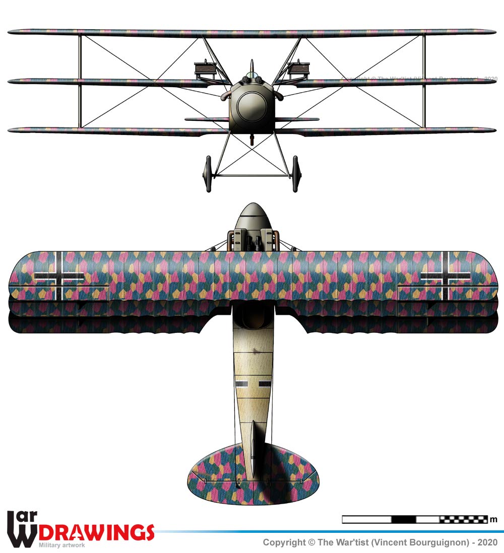 Benz Bz.IIIb V8 powerplant in a special triplane configuration. During