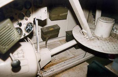 Le compartiment de combat était en grande partie occupée par un puits de tourelle circulaire fixé à la tourelle (l' arbre de transmission passait sous le plancher du puits) et les rangements de munitions. Derrière l' arbre d' entraînement se trouvait la trappe d' évasion montée sur le plancher. Le M22 Locust embarquait 50 coups de 37 mm et 2500 balles de 7.62 mm. La tourelle qui était dotée d' un système de rotation très primitif, était entièrement moulée. Les seules ouvertures de cette tourelle étaient les deux trappes d' accès montées sur charnières sur la partie arrière du toit. Cette partie arrière était allongée pour former une saillie qui accueillait à l' intérieur le poste radio dont on voit l' antenne à l' arrière de la saillie. La tourelle était encore équipée de trois épiscopes: un rotatif sur la trappe de droite, un autre épiscope rotatif devant cette même trappe et un épiscope fixe dans le coin avant-gauche du toit. La tourelle accueillait les deux autres hommes d' équipage: le commandant-chargeur assis dans la partie droite de la tourelle et le tireur dans la coin avant-gauche. The compartment of combat was mainly occupied by a circular well of turret fixed at the turret (the driveshaft passed under the floor of the well) and the arrangements of ammunition. Behind the driving shaft the trap door of escape was assembled on the floor. M22 Locust embarked 50 rounds of 37 mm and 2500 rounds of 7.62 mm. The turret which was equipped with a very primitive system of rotation was entirely moulded. The only openings of this turret were the two trap doors of access assembled on hinges on the back part of the roof. This back part was lengthened to form a projection which accomodated inside the radio station which one sees the antenna on the back of the projection. The turret was still equipped with three episcopes: rotary on the right trap door, another rotary episcope in front of this same trap door and a fixed episcope in the left-front corner of the roof. The turret accomodated the two other men of crew: the commander-loader sitting in the right part of the turret and the gunner in the left-front corner.