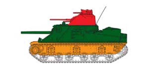 Design: Armor Trois types de superstructure furent montée sur les modèles de la série M3. La première, la plus fréquente qui équipa les modèles M3, M3A4 et M3A5 était assemblée par rivetage. Ce montage n' était cependant pas le plus fiable en raison du risque de déchaussage des rivets en raison des coups reçus sur le blindage ou de l' usure due aux difficultés du terrain, ce qui pouvait fragiliser l' ensemble. Three types of superstructure were assembled on the models of the series M3. The first, most frequent which equipped models M3, M3A4 and M3A5 was assembled by riveting. This assembly was not however most reliable because of the risk of baring of the rivets because the blows received on the shielding or wear due to the difficulties of the ground, which could weaken the unit.