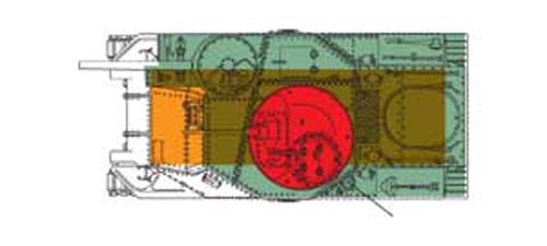 Notons encore que le blindage était constitué de plaques en acier homogènes et que la forme de la caisse était dans l' ensemble très compliqué et peu moderne. En effet le design comportait pas mal de plans et d' angles ce qui créait des pièges à éclats. La haute silhouette du char était également un problème. Still let us note that the shielding consisted of homogeneous steel plates and that the shape of the hull was very complicated and not very modern. Indeed the design did comprise much plans and angles what created traps for glares. The high silhouette of the tank was also a problem.