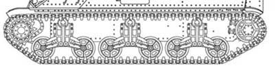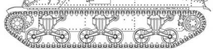 Les derniers exemplaires bénéficieront de boggies plus larges avec des rouleaux porteurs montés à l' arrière sur une potence. Cette nouvelle suspension sera montée également sur le M4 Sherman dont elle deviendra la suspension standard. The last specimens will profit from broader bogie trucks with return rollers assembled to the back on an bracket. This new suspension will be also assembled on M4 Sherman of which it will become the standard suspension.