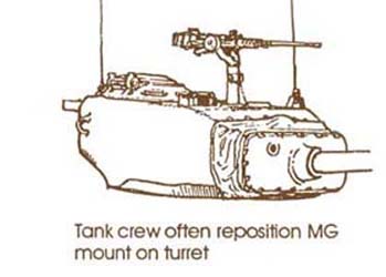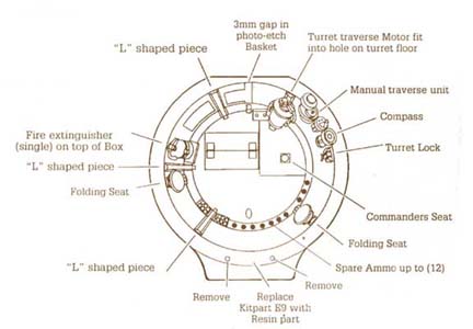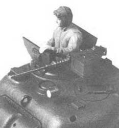 Design: Turret Le Sherman selon le canon (75 mm ou 76 mm) fut doté de deux types de tourelles. La tourelle standard dotée du canon de 75 mm (M2 ou M3) était de forme arrondie et entièrement moulée. Elle accueillait trois hommes d' équipage, le commandant, assis dans le coin arrière-droit, le tireur, assis dans le coin avant-droit et le chargeur assis à la gauche de la culasse du canon. A l' intérieure, le haut de la tourelle était munis d' interphones sur tout son pourtour. Fait important, la tourelle était dotée d' un véritable puits de tourelle où étaient disposés les sièges, ainsi que le mécanisme de rotation de la tourelle et plusieurs munitions de 75 mm (10 coups). La tourelle était doté à l' arrière d' un renflement ou était installé, le poste radio du char pour les communication hors char. A l' extérieur la tourelle était dotée, d' une large trappe d' accès (sur le toit) à deux montants (sur charnières) s' ouvrant sur les côtés au dessus du commandant. Sur les premiers modèles, c' était le seul moyen d' accès ou d' échappatoire , ce qui pouvait poser problème. Par la suite la tourelle fut dotée non seulement de la trappe du commandant (maintenant avec des montants s' ouvrant vers l' avant et l' arrière) mais également d' une petite trappe ovale (montée sur charnière) pour le chargeur. La trappe du commandant sera éventuellement remplacée par une coupole de commandant sertie d' épiscopes fixes, avec une trappe d' une seule pièce. Vers l' avant de la tourelle on trouvait la prise d' air du ventilateur de tourelle ainsi que deux épiscopes fixes pour le tireur et le chargeur. A l' arrière, sur le coin arrière-gauche, on trouvait l' antenne du poste radio. Sur le renflement arrière de la tourelle, se situait un dispositif d' arrimage pour la mitrailleuse de 12.7 mm antiaérienne. Celle-ci (12.7 mm HBM2 calibre .50) quant elle était opérationnelle , était montée sur un piédestal, soit à l' avant de la trappe du commandant, soit sur la gauche de celle-ci. Pour finir, sur le côté gauche de la tourelle, on trouvait une petite trappe pour l' évacuation des douilles. Sherman according to the gun (75 mm or 76 mm) was equipped with two types of turrets. The standard turret equipped with the gun of 75 mm (M2 or M3) was of rounded and entirely cast. It accomodated three men of crew, the commander, sitted in the back-right corner, the gunner, sitted in the front-right corner and the loader sitting with the left of the cylinder head of the gun. Inside, the top of the turret was provided with intercoms on all its circumference. Important fact, the turret was equipped with a genuine well of turret where the seats were laid out, as well as the traverse gear of the turret and several ammunition of 75 mm (10 rounds). The turret was equipped to the back with a bulge or was installed, the radio station of the tank for the outside communications. Outside of the turret was equipped, of a broad trap door of access (on the roof) with two amounts (on hinges), opening on the sides, on the top of the commander. On the first models, it was the only means of access or escape, which could pose problem. Thereafter the turret was equipped with the trap door of the commander (now with amounts opening forwards and the back) but also of a small oval trap door (mounted on hinge) for the loader. The trap door of the commander will be possibly replaced by a cupola of commander crimped of fixed episcopes, with a trap door of only one part. Forwards turret one found the air intake of the ventilator of turret like two fixed episcopes for the gunner and the loader. To the back, on the back-left corner, one found the antenna of the radio station. On the back bulge of the turret, a device of stowing for the anti-aircraft machine-gun of 12.7 mm was located. This one (12.7 mm HBM2 .50cal) as it was operational, was assembled on a pedestal, either in front of the trap door of the commander, or on the left of this one. For finished, on the left side of the turret, one found a small trap door for the evacuation of the casings.