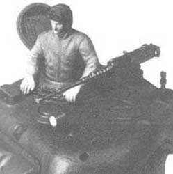 Pour l' accèsà la caisse, les deux hommes d' équipage, disposaient de deux trappes montées sur charnières disposées sur le toit de celle-ci. Selon l' inclinaison du glacis (plaque frontale), 34° ou 43°, ces trappes faisaient saillies sur le glacis (les renflements sont parfaitement visibles sur les photos) ou étaient entièrement disposées sur le toit. Pour leur vision, les deux hommes disposaient de deux épiscopes rotatifs montés sur les trappes ainsi que deux fentes de vision à l' avant des renflements sur les modèles au glacis de 34°. Ces fentes furent vite abandonnées ou recouvertes de protections blindées de 25.4 mm d' épaisseur. Sur l' avant de la coque étaient encore disposés des ventilateurs (au nombre de 3). For the access to the hull, the two men of crew, had two trap doors assembled on hinges laid out on the roof of this one. According to the slope of the glacis (frontal plate), 34° or 43°, these trap doors made covered on the glacis (the bulges are perfectly visible on the photographs) or was entirely laid out on the roof. For their vision, the two men had two rotary episcopes assembled on the trap doors like two slits of vision in front of the bulges on the models with the glacis of 34°. These slits quickly were abandonned or covered with 25.4 mm thickness armoured protections. In front of the hull were still laid out ventilators (3).