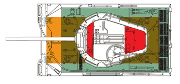 Design: Armor En raison des exigences quant à la vitesse du char. Un gros travail sur le poids dut être effectué. Sur un véhicule blindé, c' est l' épaisseur du blindage qui détermine en grande partie le poids. Plus le blindage est épais, plus le poids est important au détriment de la vitesse et de la mobilité du véhicule. Pour ces raisons, le M18 qui devait être un chasseur de char très rapide et très mobile, fut doté d' un blindage très léger qui n' était guère efficace contre les armes antichar lourdes allemandes. La disposition en pente du blindage compensait un peu cette faiblesse (les parois en pentes évacuent en principe plus qu' elles n' encaissent les projectiles ennemis) mais la meilleure protection du M18 était sa vitesse et sa grande agilité. Because of the requirements for the speed of the tank. A large work on the weight had to be carried out. On an armoured vehicle, it is the thickness of the shielding which determines the weight mainly. Thicker the shielding is, more important the weight is, to the detriment of the speed and the mobility of the vehicle. For these reasons, M18 which was to be a hunter of tank very fast and very mobile, was equipped with a very light shielding which was hardly effective against the German heavy anti-tank weapons. The inclined provision of the shielding compensated a little this weakness (the inclined walls evacuate in theory more than they take the enemy projectiles) but the best protection of M18 was its speed and its great agility.