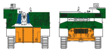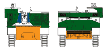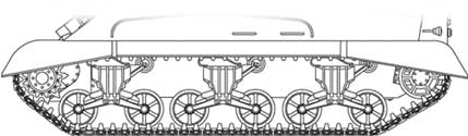 Vers la fin de la production, les boggies type M3 furent remplacés par des boggies type M4 montés également sur le Sherman. Le seul véritable changement est le déplacement des rouleaux porteurs vers l' arrière. des boggies (et non plus au centre). Cette suspension équipa également le M7B1. Towards the end of the production, the bogie trucks type M3 were replaced by bogie trucks M4 type also assembled on Sherman. The only true change is the displacement of the return rollers carrying the bogie trucks (and either in the center). This suspension also equipped the M7B1.