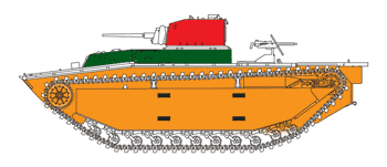 Landing Vehicle Tracked (LVT) LVT(A)-1 En raison des risques de rencontrer une opposition blindée japonaise lors de la reconquête du Pacifique, les Marines désiraientt disposer d' un LVT blindé, armé d' une tourelle avec canon capable d' y faire face. Il s' agissait non plus d' un cargo amphibie mais d' un véritable char amphibie ou Amtank (Amphibious Tank). Les Marines contactèrent FMC, qui développait son LVT-2 Water Buffalo alors que Borg-Warner développait un véhicule convertible similaire pouvant accueillir une tourelle de M3 Stuart Light Tank. Cependant le design de Borg-Warner ressemblait trop au Alligator de Roebling et les Marines, lui préféraient le LVT-2 de FMC. Ce fut donc ce dernier qui fut choisi comme base pour ce premier Amtank. Because of the risks to meet a Japanese armoured opposition at the time of the reconquest of the Pacific, the Marines wished to have an armoured LVT, armed with a turret with gun able to face there. It acted either of an amphibious carrier but of a genuine amphibious tank or Amtank. The Marines contacted FMC, which developed its LVT-2 Water Buffalo whereas Borg-Warner developed a similar convertible vehicle being able to accomodate a turret of M3 Stuart Light Tank. However the design of Borg-Warner resembled too much to the Alligator of Roebling and the Navy, preferred the LVT-2 of FMC to it. It was thus the latter which was selected as bases for this first Amtank.