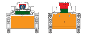 La partie arrière du LVT(A)-1 était identique à celle du LVT-2, sinon qu' elle était blindée. Le plateau arrière comportait trois plaques dont celle du milieu comportait une large grille de ventilation montée sur charnières. La partie arrière de la caisse accueillait juste les deux orifices d' échappement. The rear deck of the LVT(A)-1 was identical to that of the LVT-2, if not which it was armoured. The rear deck comprised three plates and the medium comprised a broad grid of ventilation assembled on hinges. The rear plate of the hull accomodated just the two exhaust ports.
