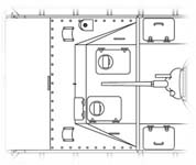 Pour ménager un compartiment de combat fermé, la cabine fut prolongée par dessus les trois-quart de l' espace-cargo. Ce compartiment comportait une trappe montée sur charnière sur chaque côté ainsi que deux trappes également montées sur charnières sur le toit. Le toit du compartiment de combat accueillait également la circulaire de 1.187 m de la tourelle. Le compartiment de combat accueillait également les 104 projectiles de 37 mm et les 6000 cartouches de 7.62 mm embarqués. To create a closed compartment of combat, the cabin was prolonged over the three-quarter of the space-cargo. This compartment comprised a trap door assembled on hinge on each side like two trap doors also assembled on hinges on the roof. The roof of the compartment of combat also accomodated the circular of 1.187 m of the turret. The compartment of combat also accomodated the 104 projectiles of 37 mm and the 6000 cartridges of 7.62 mm embarked.