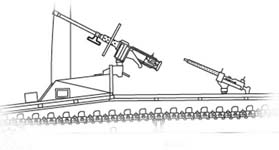 L' armement comportait une mitrailleuse de 12.7 mm (.50cal) et trois mitrailleuses de 7.62 mm (.30cal) montées sur le toit de la cabine ou sur les parois de l' espace cargo. Cet arrangement pouvait varier selon les préférences des équipages et les réalités du terrain. The armament comprised a machine-gun of 12.7 mm (.50cal) and three machine-guns of 7.62 mm (.30cal) assembled on the roof of the cabin or the walls of cargo-space. This arrangement could vary according to the preferences of the crews and field realities.