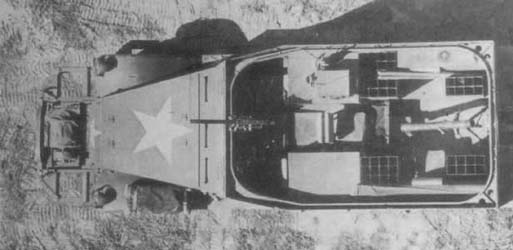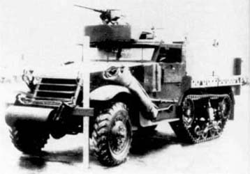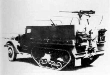 M21 Halftrack 81 mm Mortar Motor Carriage Le M4 ne donnait pas entière satisfaction et l' Ordnance Department ordonna de placer également le mortier de 81 mm sur le M3. Pour permettre l' utilisation du mortier dans le compartiment de combat, l' affût de l' arme fut renforcé, ainsi que le plancher du véhicule. Fait important, le mortier n' était plus dirigé vers l' arrière mais vers l' avant. du véhicule et pouvait maintenant pivoter de 30° de chaque côté. L' armement était complété par une mitrailleuse .50cal (12.7 mm) M2 montée sur piédestal. M4 did not give whole satisfaction and Ordnance Department ordered to also place the mortar of 81 mm on M3. To allow the use of the mortar in the compartment of combat, the mounting of the weapon was reinforced, as well as the floor of the vehicle. Important fact, the mortar was not directed any more backwards but forwards. vehicle and could now swivel of 30° on each side. Armament was supplemented by a .50cal machine-gun (12.7 mm) M2HB assembled on pedestal.