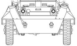 M8 Greyhound Armored Car Design Le M8 Light Armored Car était une voiture blindée légère de 7882.2 kg mesurant 5 m de long, 2.53 m de large et 2.26 m de haut. Il était divisé en deux compartiments: le compartiment arrière accueillant le moteur et le compartiment avant accueillant le poste de pilotage à l' avant et le poste de combat. L'équipage du M8 était composé de 4 hommes dont deux prenaient place dans la caisse: le pilote était assis dans le coin avant gauche du véhicule, l' opérateur radio dans le coin avant droit. M8 Light Armored Car was a light armoured car of 7882.2 kg, 5 m long, 2.53 m broad and 2.26 m in height. It was divided into two compartments: the back compartment accomodating the engine and the front compartment before accomodating the cockpit and the post of combat. The crew of M8 was composed of 4 men of which two are located in the hull: the driver in the front-left corner and the radio operator in the front-right corner.