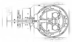A l' intérieur, le pilote disposait d' un volant pour obtenir la direction et d' une transmission comprenant 4 rapports avant et une marche arrière. Le tableau de bord était situé devant lui, fixé à la plaqua avant de la superstructure. At the interior, the pilot had a steering wheel to obtain the steering and a transmission including 4 forward and a reverse speeds. The commands pannel was located in front of him, fixed to the front plate of the superstructure.