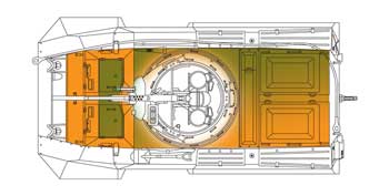 Le blindage du M8 était assemblé par soudures et variait entre 9 et 32 mm. La tourelle était coulée d' une seule pièce. Cette faible épaisseur est typique des véhicules de reconnaissance rapides. The shielding of M8 was assembled by welding and varied between 9 and 32 mm. The turret was cast in an only one part. This low thickness is typical fast vehicles of reconnaissance.