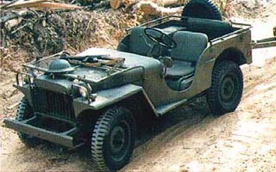 1/4 Ton, 4x4, Truck (Jeeps) Genesis La Jeep Willys est sans aucun doute l' un des véhicules phares du vingtième siècle. Encore aujourd'hui elle fait le bonheur de nombreux collectionneurs et est encore fabriquée dans plusieurs pays (Chine, Inde, ...). De nombreux fabricants s' en inspirent pour réaliser des 4x4 légers comme Mistibushi ou Nissan... L' histoire de la Jeep commence dans les années trente, au moment où les militaires demandèrent la réalisation d' un véhicule tout terrain léger pour remplacer le cheval jusqu' alors utilisé par l' US Army. Ce brave animal, cependant, ne pouvait transporter qu' un seul passager, très peu de matériel et exigeait un entretien constant et journalier. Le cheval était parfois remplacé par la moto avec side-car mais cette dernière offrait que peu d' améliorations. Les premiers essais ne donneront pas suite. Les spécifications précises et définitives ne furent couchées sur papier qu'en juin 1940, elles décrivaient un véhicule avec: 4 roues motrices et un poids de 540 kg. Les militaires très impatients exigèrent que 70 véhicules soient réalisés dans les 75 jours ! Un total de 135 appels d' offres furent effectués mais seulement deux constructeurs y répondirent favorablement: Bantam et Willys. The Willys Jeep is without any doubt one of the most important vehicles of the twentieth century. Still today it makes the happiness of many collectors and is still manufactured in several countries in the world (China, India...). Many manufacturers is inspired some to carry out light 4x4 like Mistibushi or Nissan... The history of the Jeep starts in the Thirties, when the US Army asked for the realization of a light cross-country vehicle to replace the horse hitherto used by US Army. This honest animal, however, could transport one passenger, very little material and required a constant and daily maintenance. The horse was sometimes replaced by the motor bike with sidecar but the latter offered that few improvements. The first tests will not take action pursuant. The precise and final specifications were lying on paper only in June 1940, they described a vehicle with: 4 driving wheels and a weight of 540 kg. The Army very impatient required that 70 vehicles be produced in the 75 days! A total of 135 invitations were carried out but only two manufacturers answered it favorably: Bantam and Willys.
