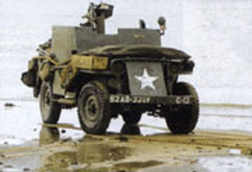 Le gros défaut de la Jeep est le manque criant de protection pour l'équipage, ce qui pouvait être dangereux lors de missions de reconnaissance. En 1941, la firme Smart réalisa une version blindée de la Jeep. Le pare-brise fut remplacé par un grand bouclier blindé doté de fentes de vision. Cette version fut baptisé M25 Scout Car. Cependant l' ajout de blindage modifia défavorablement le poids du véhicule. Le moteur fatiguait rapidement et la suspension était mise à rude épreuve. Malgré plusieurs modifications pour réduire le poids, la M25 Scout Car fut finalement abandonnée. The large defect of the Jeep is the lack of protection for the crew, which could be dangerous at the time of reconnaissance missions. In 1941, the Smart firm carried out an armoured version of the Jeep. The windshield was replaced by a large armoured shield equipped with slits of vision. This version was baptized M25 Scout Car. However the addition of shielding modified the weight of the vehicle unfavourably. The engine tired quickly and the suspension was put at hard test. In spite of several modifications to reduce the weight, M25 Scout Car was finally abandoned.