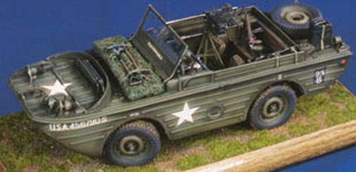 En avril 1941, les militaires commandèrent une version amphibie de la Jeep à Ford. A partir de la GPW Ford réalisa effectivement un modèle amphibie doté d' une carrosserie étanche en forme de canot, qu' il présenta le 18 février 1942. Cet engin pourtant assez lourd, fut fabriqué à 7900 exemplaires. Peu populaire auprès des Américains, cette version fut surtout utilisée par les Russes. In April 1941, the Army ordered an amphibian version of the Jeep to Ford. From the GPW Ford carried out indeed an amphibious model equipped with a tight body in the shape of boat, which it presented on February 18, 1942. This rather heavy machine however, was manufactured to 7900 specimens. Not very popular near the Americans, this version was especially used by the Russians.