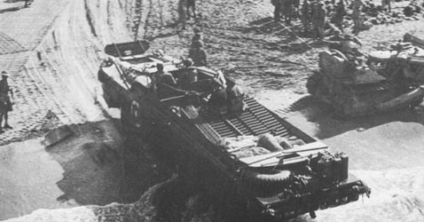 Le Duck fut utilisé pour la première fois en Nouvelle-Calédonie en 1943, puis fut très largement utilisé dans les divers débarquement en Europe que ce soit en Sicile, en Italie, en Provence et surtout en Normandie. Eisenhower déclara que le débarquement du 6 juin 1944 aurait été impossible sans le Duck. Le Général de Gaulle débarqua en France d'un Duck. Après qu'une tempête ait endommagé sérieusement les ports artificiels mis en place par les Alliés les Ducks devinrent encore plus indispensables. Les Ducks prouvèrent encore leur valeur après le 16 juillet, prise du port de Cherbourg en effectuant 6000 navettes pour vider les cargos et transporter les marchandises vers les quais endommagés. Après la Normandie, les Ducks suivirent la progression des Alliés au coeur de l'Europe et furent souvent utilisés en tandem avec les ponts Bailley pour franchir les divers cours d'eau rencontrés. The Duck was used for the first time in New-Caledonia in 1943, then very widely was used in the various landing in Europe that this be in Sicily, in Italy, in Provence and especially in Normandy. Eisenhower declared that the landing of June 6 1944 would have been impossible without the Duck. The General de Gaulle landed in France from a Duck. After a storm has damaged seriously artificial harbors realized by the Allies, the Ducks became again more essential. The Ducks proved again their value after July 16, the taken of the harbor of Cherbourg while realizing 6000 shuttles to empty the cargos and transport the merchandises towards the damaged quays. After the Normandy, the Ducks followed the progression of the Allies in the Europe heart and often were used in tandem with the bridges Bailley to cross the various rivers met.