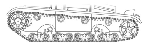 Le T-26 conservait la disposition générale du Vickers Six-Ton: un moteur arrière refroidi par air GAZ T-26 (version construite sous licence du moteur d' origine Armstrong-Siddeley) de 90 cv seulement, barbotins avant et direction par freinage et débrayage. La suspension était du type Vickers avec deux chariots à galets munis de ressorts à lames de chaque côté. Chaque chariot supportait 4 double-galets à bandages de caoutchouc, la suspension était complétée par 4 double-rouleaux porteurs. La vitesse maximale du T-26 modèle 1933 était de 27 km/h alors que celle du T-26 modèle 1931 était de 35 km/h. C' est peu et le char fut jugé trop lent pour des missions réservées aux blindés. Une version plus rapide (56 km/h max.) à transmission Chrisite (reprise sur le char BT), le T-46 fut bien testée mais fut jugée trop complexe. T-26 preserved the general provision of Vickers Six-Tone: a back engine cooled by air GAZ T-26 (version built under licence of the engine Armstrong-Siddeley of origin) of 90 hp only, front sprocket-wheels and steering by braking and disengaging. The suspension of the Vickers type was with two roller carriages provided with leaf springs on each side. Each carriage supported 4 double-road wheels with rubber bindings, the suspension was supplemented by 4 double-return rollers. The maximum speed of T-26 model 1933 was of 27 km/h whereas that of T-26 model 1931 was of 35 km/h. It is little and the tank was considered to be too slow for missions reserved for the armoured tanks. A faster version (56 km/h max.) with Chrisite transmission (took on tank BT), T-46 was well tested but considered to be too complex.