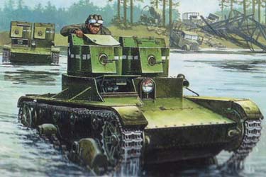 Les chars de commandement étaient également munis d' un poste radio. Le canon de 37 mm était à l' origine un Hotchkiss modifié mais il fut plus tard remplacé par le canon russe de 37 mm PS-2 modèle 1930 qui est en fait une copie du canon anti-char allemand de 37 mm Pak 30 de Rheinmetall, doté d' un tube plus long et d' une meilleure vélocité initiale. Les chars armés du canon de 37 mm furent appelés T-26 modèle 1932. The tanks of command were also provided with a radio station. The gun of 37 mm was at the origin a modified Hotchkiss but it was replaced later by the Russian gun of 37 mm PS-2 model 1930 which is in fact a copy of the German anti-tank gun of 37 mm Pak 30 of Rheinmetall, equipped with a longer tube and a better initial velocity. The tanks armed with the gun of 37 mm were called T-26 model 1932.