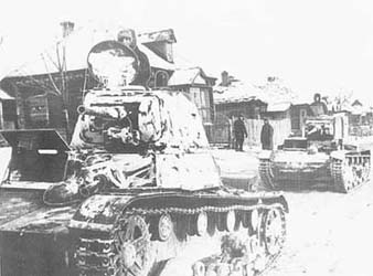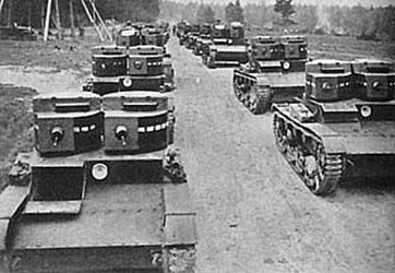 T-26 Light Tank in Action Le T-26 fut utilisé au combat bien avant le Grande Guerre Patriotique contre les Finlandais et les Polonais (conflits considérés comme faisant partie de la 2e Guerre mondiale). En juillet 1938, le T-26 fut utilisé contre les Japonais au lac Hasan au nombre de 257 unités (avec 81 chars BT et 13 SU-5). Au cours de cette bataille 9 T-26 furent détruits et 76 autres furent endommagés et 8 chars BT furent perdus. 39 chars furent réparés et 40 furent renvoyés à l' usine. En fait beaucoup de char connurent des difficultés techniques et des pannes au niveau de la boîte de vitesse et des embrayages à friction. T-26 was used to the combat well before the Great Patriotic War against the Finns and the Poles (conflicts considered as forming part of the 2nd World war). In July 1938, T-26 was used against the Japanese at the lake Hasan with a total of 257 units (with 81 tanks BT and 13 SU-5). During this battle 9 T-26 were destroyed and 76 others were damaged and 8 tanks BT were lost. 39 tanks were repaired and 40 were returned to the factory. In fact much of tank knew technical difficulties and breakdowns on the level of the gear box and friction clutchs.