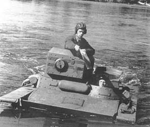 T-37 Light Amphibious Tank Durant les années vingt, les Soviétiques sentaient qu'ils avaient besoin d'un char léger amphibie capable de traverser des rivières pour poursuivre l'ennemi ou effectuer des missions de reconnaissance. Les Britanniques avaient ce genre de véhicule, le Vickers Carden-Lloyd A4E11 et les Russes achetèrent quelques uns en 1929 pour servir de base à leurs propres réalisations. Les deux premiers chars amphibies russes T-33 et T-41 furent conçus à l'usine n°47 près de Moscou. Le T-33 était quasi identique au modèle britannique, il avait environ le même poids et avait un équipage de 2 hommes. Le T-41 était plus large que le T-33 et avait de meilleures capacités de flottabilité. Cependant la la suspension Carden-Lloyd était défectueuse et le T-41 connaissait des problèmes d'étanchéité. Aucun des deux chars ne fut acceptés pour le service et pour la production. During the years twenty, the Soviets felt that they needed an amphibious light tank able to cross rivers to follow the enemy or carry out reconnaissance missions. The Britishs had this vehicle kind, the Vickers Carden-Lloyd A4E11 and the Russians bought some an in 1929 to use basis to their own realizations. The two first Russian amphibious tanks T-33 and T-41 were conceived to the factory n°47 close to Moscow. The T-33 was almost the same as the British model, it had about it same weight and had a crew of 2 men. The T-41 was wider than the T-33 and had better capacities of buoyancy. Nevertheless it the suspension Carden-Lloyd was defective and the T-41 knew waterproofing problems. None of the two tanks was not accepted for the service and for the production.