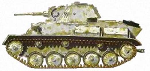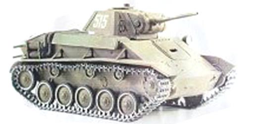 T-70 Light Tank Afin de remplacer le T-60 peu satisfaisant, les Russes décidèrent en 1942 de réaliser un char léger armé du canon de 45 mm sur base du châssis du T-60. Ce nouveau char appelé T-70 modèle 1942 se distinguait du T-60 par un cinquième galet à sa suspension et son canon de 45 mm modèle 1938. La production débuta en mars 1942 et se termina en août 1943 avec un total de 7500 exemplaires environ fabriqués par l'usine n°37, l'usine n°38 et GAZ. Autre changement peu visible mais important, l'augmentation du blindage. Au niveau de la caisse, le blindage frontal était de 35 mm. Pour la tourelle il était de 35 mm sur toutes les parois verticales et de 60 mm pour le masque. L'augmentation du blindage occasionna une augmentation du poids qui passa à 9200 kg. Pour compenser cette augmentation, le T-70 fut équipé de deux moteurs GAZ-202 développant chacun 70 cv. Les performances du T-70 et du T-60 était fort semblables. In order to replace the T-60 not very satisfactory, the Russians decided in 1942 to realize a light tank armed with the 45 mm gun on the basis of the chassis of the T-60. This new tank named T-70 model 1942 distinguished themselves of the T-60 by a fifth road wheel to its suspension and its canon of 45 mm model 1938. The production started in March 1942 and ended in August 1943 with a total of 7500 copies about, made by the factory n°37, the factory n°38 and GAZ. Other change not very visible but important, the increase of armor. At the level of the hull, frontal armor plates was of 35 mm. For the turret it was of 35 mm on all the vertical walls and 60 mm for the mantlet. The increase of armor caused an increase of the weight that passed to 9200 kg. To compensate this increase, the T-70 was equipped of two GAZ-202 engines developing each 70 hp. The performances of the T-70 and of the T-60 was similar strong.