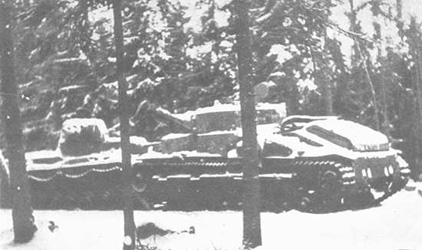 En décembre 1939, il fut décidé de poursuivre les essais du SMK en conditions de combat lors de la Guerre d'Hiver contre la Finlande. Un équipage mixte fait d'ouvriers de la LKZ et de tankistes fut composée et le prototype fut envoyé par rail à la passe de Karélie. Avec le T-100 et le prototype du char KW, le SMK fut incorporé dans une compagnie spéciale de chars super lourds, au sein du 91ème bataillon de char appartenant à la 20ème brigade blindée. Le SMK fut aperçu pour la première fois au combat, le 17 décembre 1939, dans la région de Hottinen. Deux jours plus tard il prend part à l'assaut contre les fortifications finlandaises près de Summa. Le char fut immobilisé et finalement abandonné par son équipage qui fut évacué par le T-100. Le SMK resta pendant deux mois et demi en position car les Finlandais ne disposaient pas de véhicules assez puissants pour remorquer un tel monstre d'acier. De plus le périmètre proche du SMK était protégé par l'artillerie soviétique. Cependant les Finlandais réussirent à inspecter le char et à prendre quelques équipements et pièces. Notons que le SMK fut avec erreur nommé Pz.Kpfw T-35C 752 (r) (alors qu'il n'avait rien à voir avec le T-35). En février 1940, les Russes réussirent à atteindre le SMK après avoir dépassés la ligne Mannerheim. En mars 1940, six T-28 furent nécessaires pour tracter le SMK jusqu'à la gare de Perkijärvi. Le SMK fut démonté et les éléments furent envoyés à l'usine LKZ de Léningrad par rail. Triste fin pour ce monstre d'acier, qui sonna le glas des chars multi-tourelles trop fragiles, trop compliqués. Plus aucun design de ce genre ne fut développé par la suite. Cependant il inspira très fort le char lourd KV-1. In December 1939, it was decided to continue the tests of the SMK in conditions of combat at the time of the Winter War against Finland. A mixed crew made of workmen of the LKZ and tankists was composed and the prototype was sent by rail to the Karelian pass. With T-100 and the prototype of the tank KW, the SMK was versed a special company of heavy super tanks, within the 91st battalion of tank pertaining to the 20th armored brigade. The SMK was seen for the first time at the combat, on December 17, 1939, in the area of Hottinen. Two days later it takes part yo the attack against the Finnish fortifications close to Summa. The tank was immobilized and finally abandonned by its crew which was evacuated by T-100. The SMK remained during two months and half in position because the Finns did not have enough powerful vehicles to tow this steel monster. Moreover the perimeter close to the SMK was protected by the Soviet artillery. However the Finns succeeded to inspect the tank and steal some equipment and parts. Let us note that the SMK with error was named Pz.Kpfw T-35C 752 (R) (then that it was not a T-35 version). In February 1940, the Russians succeeded to joint the SMK after having exceeded the Mannerheim line. In March 1940, six T-28 were necessary to tractor draw the SMK until the station of Perkijärvi. The SMK was dismounted and the elements were sent to the LKZ factory of Leningrad by rail. Sad end for this steel monster, which rang the knell of the multi-turreted tanks, too fragile, too complicated. More no design of this kind was developed thereafter. However it inspired very extremely heavy tank KV-1.