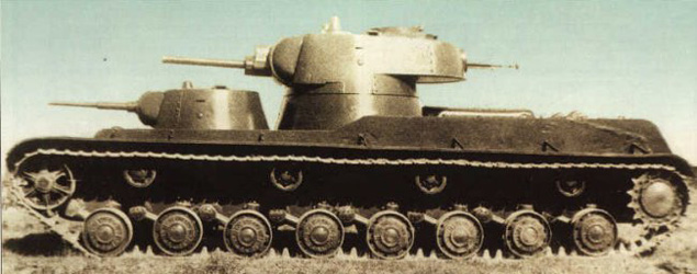 SMK (Sergius Mironovitch Kirov) Heavy Tank Vers la moitié des années trente, le char lourd multi-tourelles T-35 débuta son service au sein de l'Armée Rouge. Ce char devait être produit jusqu'au développement d'un nouveau char lourd. Le développement du nouveau char fut initié en avril 1938. Le premier prototype du remplaçant du T-35 fut seulement présenté le 9 décembre 1938 au Kremlin, en raison de nombreux retards. Le premier prototype du SMK (Sergius Mironovitch Kirov) était un char à trois tourelles, avec un canon de 76.2 mm monté sur la tourelle principale et deux canons de 45 mm installés dans deux tourelles secondaires. Towards half of the Thirties, the multi-turreted heavy tank T-35 began its service within Red Army. This tank was to be produced until the development of a new heavy tank. The development of the new tank was initiated in April 1938. The first prototype of the substitute of T-35 was only presented on December 9, 1938 to the Kremlin, because of many delays. The first prototype of the SMK (Sergius Mironovitch Kirov) was a tank with three turrets, with a gun of 76.2 mm assembled on the principal turret and two guns of 45 mm installed in two secondary turrets.