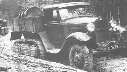 Notons encore le ZIS-22 basé sur le ZIS- 5 produit entre 1939 et 1941, le ZIS-33 également basé sur le ZIS-5 et produit en 1940, le ZIS-35Sh également basé sur le ZIS-5 et le GAZ-33 TK de 1933 basé sur le GAZ-A armé d'un canon anti-char. Ce dernier modèle n'est pas un vrai halftracks car les chenilles étaient simplement appliquées sur les roues arrières. Note again the ZIS-22 based on the ZIS- 5 produced between 1939 and 1941, the ZIS-33 equally based one on the ZIS-5 and produced in 1940, the ZIS-35Sh equally based on the ZIS-5 and the GAZ-33 TK of 1933 based on the GAZ-A armed with an anti-tank gun. The latter models is not a true halftrack because tracks were simply applied on the rear wheels.