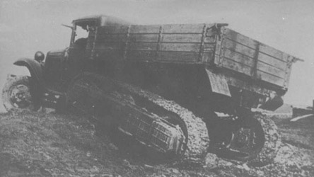 C'est un résultat bien pauvre comparé à la multitude de véhicule conçus chez les Allemands à partir des transports légers Sd.Kfz.250, moyens Sd.Kfz.251 et des tracteurs Zugkraftwagen; chez les Américains à partir des M2 Halftrack Car et M3 Halftrack Personnel Carrier. Pourtant c'est en Russie que l'histoire des halftracks débuta vraiment avec la conversion d'une luxueuse voiture du Tsar en véhicule semi-chenillé de neige par le responsable du parc automobile de l'empereur russe, le Français Kégresse. Il peut paraître étonnant que ce genre de véhicule ne fut pas plus développé en Russie par la suite, en sachant qu'il était très bien adapté aux conditions parfois rude rencontrées dans ce pays. This a well poor result compared to the multitude of vehicles conceived by the Germans from the light model Sd.Kfz.250, medium model Sd.Kfz.251 and tractors Zugkraftwagen; and by the Americans from the M2 Halftrack Car and M3 Halftrack Personnel Carrier. Nevertheless this is in Russia that the history of the halftracks started really with the conversion of a luxurious car of the Tsar in snow halftrack vehicle by the person in charge of the automobilepark of the Russian emperor, the French Kegresse. It can appear astonishing that this vehicle kind was not more developed in Russia by the continuation, while knowing than it was very well adapted to the rough conditionssometimes met in this country.