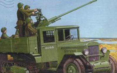 Halftracks Les véhicules utilitaires motorisés furent les parents pauvres de l'industrie de guerre soviétique durant la seconde guerre mondiale, et en particulier les véhicules semi-chenillés. En effet en raison des terribles pertes subies en 1941-1942 les Russes avaient un besoin urgent d'engins blindés lourds afin de stopper l'avance des panzers allemands. Pour cette raison, le gros de l'effort industriel porta sur ce genre de véhicule au détriment des véhicules de transport "autochtones" en nombre beaucoup moins élevé " qu'aux État-Unis et en Allemagne par exemple. De ce fait les Russes manquait cruellement de ce genre de véhicule pour leur forces mécanisés et durent faire appel à l'aide des pays alliés comme la Grande-Bretagne mais surtout des État-Unis qui fournirent aux Russes un nombre imposant de véhicules utilitaires de toute sorte. Malgré tout les Russes furent en manque tout au long du conflit et durent se résoudre le plus souvent à utiliser les chars comme véhicules de transport pour leurs fantassins comme l'attestent de nombreuses photos d'époque. A la faveur de la loi du prêt-bail, les Soviétiques reçurent 51500 jeeps, 35000 motos, 375000 camions, 8000 tracteurs... Les Russes produiront cependant quelques halftracks mais il ne s'agit là que de quelques modèles fabriqués en petites quantités, et surtout des camions semi-chenillés similaires aux Opel Maultier allemands. On est bien loin de la pléthore de modèles de tout type (transport de matériel, transport de troupes, tracteurs d'artillerie, véhicules de DCA, véhicules anti-char, véhicules de commandement, ... réalisés par les Allemands et les Américains. En fait les Halftracks les plus communs dans l'Armée rouge furent ceux de la famille M2/M3 d'origine américaine. The motorized utilitary vehicles were the poor parents of the Soviet war industry during the second World War, and in particular the halftrack vehicles. In fact because of the terrible losses suffered in 1941-1942 the Russians had an urgent need of heavy armored vehicles in order to stop the advance of the German panzers. For this reason, the big one of the industrial effort was realized on this vehicle kind to the detriment of the "autochthonous" transport vehicles in number a lot less high that in United States and in Germany for example. Therefore the Russians cruelly lacked this vehicle kind for them mechanized forces and last to call upon the assistance of the allied countries as the Great Britain but especially United States that provided to the Russians an imposing number of utilitary vehicles of all type. Despite all the Russians were some lacks throughout the conflict and last to resolve themselves most often to use the tanks as transport vehicles for their infantrymen as the testify many photos of this period. To the favor of the lend-lease law, the Soviet received 51500 jeeps, 35000 bikes, 375000 trucks, 8000 tractors... The Russians will produce nevertheless some halftracks but it is not a matter there that few models made in small quantities, and especially halftrack cargo trucks similar to the German Opel Maultier. One is well far of the plethora of models of all type (cargo carriers, personnel carriers, artillary tractors, anti-aircraft vehicles, anti-tank vehicles, command vehicles,... realized by the Germans and the Americans. In fact, the Halftracks more common in the Red army were those of the family M2/M3 of American origin.