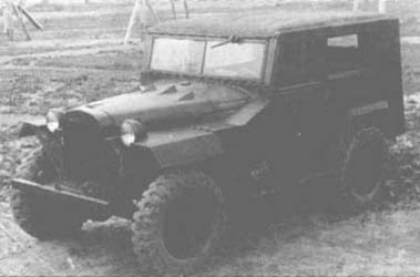 Pendant que GAZ développait la GAZ-64, l'institut de recherche NATI réalisa un 4x4 qui cependant ne dépassa jamais le stade du prototype, le NATI AR. Ce véhicule réalisé en 1941-1942 fut en effet battu par le GAZ-64 pour le choix d'un véhicule 4x4 officiel pour l'Armée rouge, bien que le design du NATI soit plus moderne (la décision fut prise par Staline). Le NATI AR était doté du même moteur que la GAZ-64 mais était équipé de deux carburateurs provenant du KIM 10 lui procurant une puissance de 57 cv. While GAZ developed the GAZS-64, the research institute NATI realized a 4x4 car that nevertheless didn't pass the stage of the prototype, the NATI AR. This vehicle realized in 1941-1942 was in fact beaten by the GAZ-64 for the choice of a vehicle 4x4 official for the Red army, well that the design of the NATI was more modern (the decision was taken by Staline). The NATI AR was endowed with the same engine that the GAS-64 but was equipped of two carburetors originating KIM 10 obtaining it a power of 57 hp.
