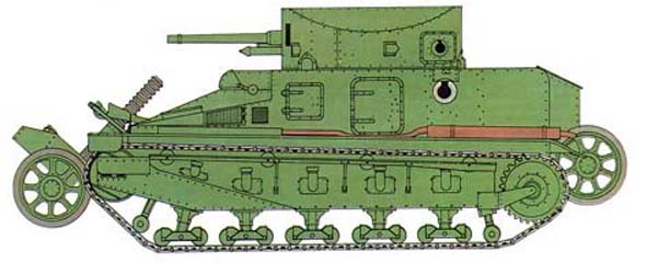 Vickers Medium Tanks Mk.I/II & III Conversions Une vingtaine de MArk I et Mark II furent convertis pour assurer des missions spéciales comme des chars de commandement, poseurs de ponts, chars tropicaux et à propulsion hybrides ou encore comme automoteurs. Deux types de chars de commandement furent produits: le premier destiné au chef du bataillon était un char conventionnel équipé d'un double appareil radio alors que l'autre, destiné au commandant de brigade, n'avait plus de tourelle et était doté d'un vaste compartiment blindé équipé d'une station radio permettant des liaisons en graphie et en phonie. About 20 Mark I and Mark II were converted to ensure special missions like tanks of command, layers of bridges, tropical tanks and with hybrid propulsions or like self-propelled guns. Two types of tanks of command were produced: the first intended for the chief of the battalion was a conventional tank equipped with a double radio whereas the other, intended for the commander of brigade, did not have turret and was equipped with a vast armoured compartment equipped with a radio station allowing the C-W and phone communications.