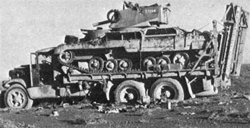 Cruiser Tank Mark I in Action Bien que fragile et trop faiblement blindé, le Mark I avec la Mark II constituait 50 % de l'effectif disponible en chars croiseurs au début de la guerre. Les deux chars combattirent en France au sein de la 1re Divison blindée en 1940 et en Égypte au sein des 2e et 7e DB en 1940-1941. La 1re Brigade blindée de la 2e DB s'opposa également aux forces de l'Axe en Grèce en 1941. Cependant ces chars déjà durement éprouvés par la campagne d'Afrique du Nord étaient encore plus fragilisés et subirent de nombreuses pertes et de ruptures de chenilles. En fait plus de chars furent perdus pour ces raisons que par le feu de l'ennemi. Les Mark I furent utilisés jusqu'à l'opération Battleaxe en juin 1941. Le peu d'exemplaires produits s'explique par la disponibilité d'un char croiseur mieux conçu, le A13 (ou Mark III). Although fragile and too slightly armoured, Mark I with Mark II constituted 50 % of strength available of tanks cruisers to the beginning of the war. The two tanks fought in France within 1st Armoured Divison in 1940 and Egypt within the 2nd and 7th AD in 1940-1941. The 1st Armoured Brigade of 2nd AB also opposed the forces of the Axis in Greece in 1941. However these tanks already hard shaken by the campaign of North Africa even were weakened and underwent many losses and ruptures of tracks. In fact more tanks were lost for these reasons than by the fire of the enemy. Mark I were used until the Battleaxe operation June 1941. The little of specimens produced is explained by the availability of a cruiser tank better designed, A13 (or Mark III).
