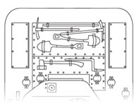 Cruiser Tank RAM Design La caisse du Ram était obtenue par construction mixte: soubassement de plaques rivetées, partie avant en trois pièces coulées boulonnées et partie supérieure de caisse coulée. The hull of the RAM was obtained by mixed construction: base of plates riveted, nose in three cast parts bolted and cast upper hull.