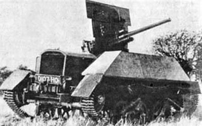 Other Self-Propelled Guns Durant la campagne de 1940, les Britanniques manquaient de véhicules blindés de toute sorte, y compris des canons automoteurs. Plusieurs tentatives sur des tankettes Bren (Universal) Carrier et Carden-Loyd Carrier furent tentées mais ces engins ne furent jamais mis en production. Y compris ce très curieux engin contrôlés à distance au design très futuriste pour l'époque. During the campaign of 1940, the British missed of armoured vehicles of any kind, including self-propelled guns. Several attempts on tankettes Bren (Universal) Carrier and Carden-Loyd Carrier were tried but these machines were never put in production. Including this very curious machine controlled remotely with the very futuristic design for the time.