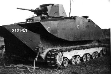 Ce char amphibie expérimental fut conçu en 1930. Le seul prototype coula lors de ses premiers essais. Il avait un équipage de 3 hommes, pesait 12 tonnes, avait un blindage de 15 mm. Son armement était constituée d'une mitrailleuse de 8 mm et était propulsé par un V2 de 228 ch qui permettait au char d'atteindre les 40 km/h sur terre et les 6.5 km/h dans l'eau. This experimental amphibious tank was designed in 1930. The only prototype sank at the time of its first tests. It had a crew of 3 men, weighed 12 tons, had a shielding of 15 mm. Its armament consisted of a machine-gun of 8 mm and was propelled by V2 of 228 hp which made it possible to the tank to reach the 40 km/h on ground and the 6.5 km/h in water.