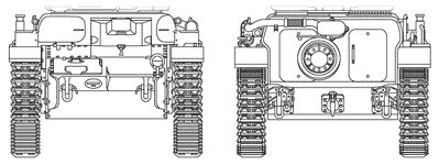 Le moteur (Renault, 4 cylindres, 5.8 L, refroidi par eau, 85 ch) était installé dans le coin arrière-droit de la caisse et le réservoir à auto-obturation était installé dans le coin arrière-gauche. Le compartiment moteur était séparé de celui de combat par une cloison pare-feu. The engine (Renault, 4 cylinders, 5.8 L, cooled by water, 85 hp) was installed in the back-right corner of the hull and the reserve with self-obturation was installed in the back-left corner. The engine compartment was separated from that of combat by a wall fire protection.