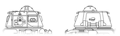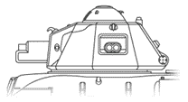 Char léger R-35/40 Design La caisse du 35-R était composée de 3 éléments de superstructure coulés, disposés sur un bas de caisse blindé. Le poste du pilote était situé à l'avant, légèrement déporté vers la gauche et possédait une écoutille à deux volets (l'un s'ouvrait vers l'avant, l'autre vers le haut). Les parois latérales du bas de caisse accueillait la suspension composée de chaque côté de 5 galets caoutchoutés: la première était indépendante, les autres regroupées sur deux bogies montés sur bras oscillants coudés suspendus. La puissance du moteur parvenait aux barbotins avant via une boîte de vitesses située dans le compartiment de combat, à la droite du pilote. La direction de type Cletrac, à freins à bande, agissait sur le différentiel simple commandé par les leviers de direction. En 1938, des barres de soutien furent installées à l'arrière du char pour améliorer ses capacités de franchissement de fossés. La vitesse maximum du 35-R n'était que de 20 km/h sur route mais grâce à des réservoirs supplémentaires, l'autonomie fut poussée à 140 km. The hull of the 35-R was made up of 3 cast elements of superstructure, laid out on an armoured lower hull. The post of the driver was located at front, slightly off-set towards the left and had a hatchway with two shutters (one opened forwards, the other upwards). The side walls of the lower hull accomodated the suspension made up on each side of 5 rubber rollers: the first independent, the others was gathered on two bogies assembled on suspended bent oscillating arms. The engine output arrived at the front sprocket-wheels via a gear box located in the compartment of combat, on the right side of the driver. The steering of the Cletrac type, with brakes with band, operated the simple differential commanded by the steering levers. In 1938, bars of support were installed on the back of the tank to improve its capacities of crossing of ditches. The maximum speed of the 35-R was only 20 km/h on road but thanks to additional tanks, autonomy was pushed to 140 km.
