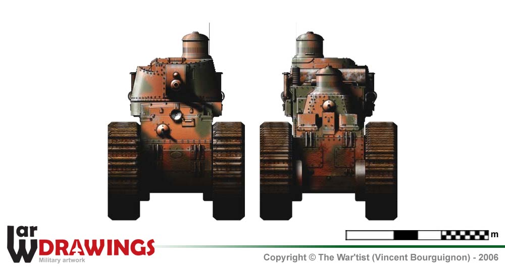 view ! The Char 2C BiS which was modified where the turret was completely changed where it has more of a boxy look & the 75 mm Gun was replace with a 155 mm Howitzer. 3 Machine Guns were removed & it increased the weight to 74 tons. |