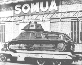 Char de Cavalerie AMX-40 EL'Atelier d'Issy-les-Moulineaux, en mars 1940 débuta l'étude du remplaçant du char de Cavalerie Somua S-35, et peut-être du S-40. L'AMX 40 était un char résolument plus moderne doté d'un coque moulée arrondie (blindage frontal: 60mm, blindage latéral 30-50mm, blindage arrière: 40mm) et d'un train de route à 4 grands galets ce qui contrastait avec les designs de l'époque dans l'armée française. L'équipage était de 3 hommes. L'AMX 40 mesurait en longueur 5.30m et en largeur 2.45m. Comme précité, le train de roulement était composé de chaque côté de 4 grands double-galets (82cm de diamètre) qui étaient portégés par des jupes blindées. Notons que les deux dernières roues étaient motrices pour permettre un déplacement sans chenilles (char convertible). Le barbotin était à l'arrière et il n'y avait pas de rouleaux porteurs. Les réservoirs installés au-dessus des trains de roulement renforçaient le blindage latéral (le gasoil qu'ils contenaient était plus difficilement inflammable que l'essence). The Workshop of Issy-les-Moulineaux, in March 1940 began the study from the substitute of the tank of Cavalry Somua S-35, and perhaps of S-40. The AMX 40 was a tank resolutely more modern equipped with a round moulded hull (frontal shielding: 60mm, side shielding 30-50mm, rear shielding: 40mm) and of a running gear with 4 large road-wheels what contrasted with the designs of the time in the French Army. The crew was of 3 men. The AMX 40 measured in length 5.30m and in width 2.45m. Like above mentioned, the running-gear was composed on each side of 4 large double road-wheels (82cm of diameter) which were portected by armoured skirts. Let us note that the two last wheels were driving to allow a displacement without tracks (convertible tank). The sprocket-wheel was with the back and there were no return rollers. The tanks installed above the running-gear reinforced the side shielding (the gas oil which they contained was flammable with more difficulty than the gasoline).