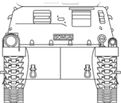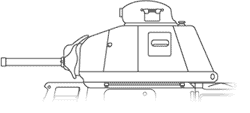 Char de Cavalerie SOMUA S-35 Design La caisse du Somua S35 en blindage moulé présentait une nette amélioration par rapport aux précédents modèles français. Elle était divisé en trois parties assemblées par boulonnage. Le bas de caisse qui accueillait le moteur , la transmission, les commandes, ainsi que la suspension boulonnée sur les flancs. La suspension était constituée de ressorts à lames semi-elliptiques et d'un ressort à boudin sur le galet arrière. Le barbotin était situé à l'arrière. La chenille était constituée d'éléments courts mono-patin et était protégée par une jupe blindée. The hull of Somua S35 in cast shielding presented a clear improvement compared to the preceding French models. It was divided into three parts assembled by bolting. The lower hull which accomodated the engine, the transmission, commands, as well as the suspension bolted on the sides. The suspension consisted of semi-elliptic leaf springs and a spiral spring on the back road-wheel. The sprocket-wheel was located at the back. The track was consisted of short elements mono-link and was protected by an armoured skirt.