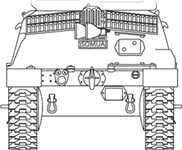 Les deux autres sections constituait la superstructure. Le compartiment-moteur-transmission était située sous la section arrière, alors que le compartiment de combat était protégé par la section avant, surplombée par la tourelle. L'accès aux deux compartiments se faisait via des volets en acier moulé. On accédait également au poste de pilotage et au compartiment de combat via une porte située sur le flanc gauche du char ou un trou d'homme dans le plancher sous la position du commandant. The two other sections constituted the superstructure. The engine-transmission compartment was located under the rear section, whereas the compartment of combat was protected by the nose section, overhung by the turret. The access to the two compartments was done via cast steel shutters. One also reached the cockpit and the compartment of combat via a door located on the left side of the tank or an inspection pit in the floor under the position of the commander.