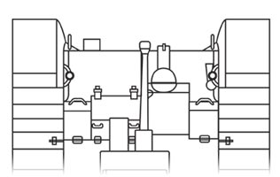 Les chenilles en acier étaient constitués de 65-67 patins avec guide central (un patin su deux), de 350 mm de large. Il fallait entre 30 et 45 minutes pour enlever ou installer les chenilles. Une fois enlevée elles prenaient place sur les garde-boues sur les côtés de la caisse. The steel tracks consisted of 65-67 links with central guide (a link of two), 350 mm broad. It was necessary between 30 and 45 minutes to remove or install the tracks. Once removed they took seat on the mudguards on the sides of the hull.