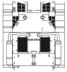 Design: Engine Compartment Le compartiment arrière accueille un moteur American La France, 4-coups, V12, refroidi par eau, développant 240 cv (en réalité 210 cv) à 2800 tours/minute, entre deux radiateurs. Le réservoir pouvait accueillit 130 L de carburant (autonomie maximum sur route de 210 km). Les deux échappements étaient montés sur les côtés de la caisse. Le plateau arrière était doté de nombreuses grilles de ventilation. Il était terminés par deux trappes montées sur charnières. Sur ses chenilles le 10 TP pouvait atteindre les 50-56 km/h sur route et sans ses chenilles, les 75 km/h. En tout terrain il pouvait (uniquement sur chenilles) atteindre les 20-35 km/h. The back compartment accomodates a American La France, 4-stroke, V12, water cooling engine, developing 240 hp (actually 210 hp) to 2800 rpm, between two radiators. The fuel tank could accomodated 130 L (maximum range on road of 210 km). The two exhausts were assembled on the sides of the hull. The rear deck was equipped with many grids of ventilation. It was finished by two hatches assembled on hinges. On its tracks the 10 TP could reach 50-56 km/h on road and without its tracks, 75 km/h. In cross-country it could (only on tracks) reach 20-35 km/h.
